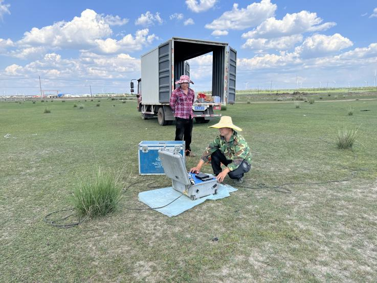七、八月份的夏天,是張家口壩上草原一年中最美的季節,卻也伴随着難耐的高溫,撲面而來的熱氣讓人窒息。烈日當空,河北省地球物理勘查院承攬的河北省張北縣金家營——郝家營一帶石墨礦普查項目正在緊張作業。