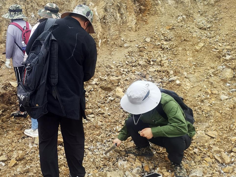 烈日炎炎,這支平均年齡二十多歲的團隊經受住了烈日“烤”驗。讀取、記錄、分析,工作人員熟練地操作儀器,井然有序。一個區域取完樣品來不及休息就趕往下一個工作區,身上的負重也越來越重。每個石塊樣品重量在2公斤左右,有時候一天采樣40餘個,工作人員就分擔背着樣品前往下一個采樣點。馮景志說:“用一身汗水保障國家資源能源安全,很值得。”